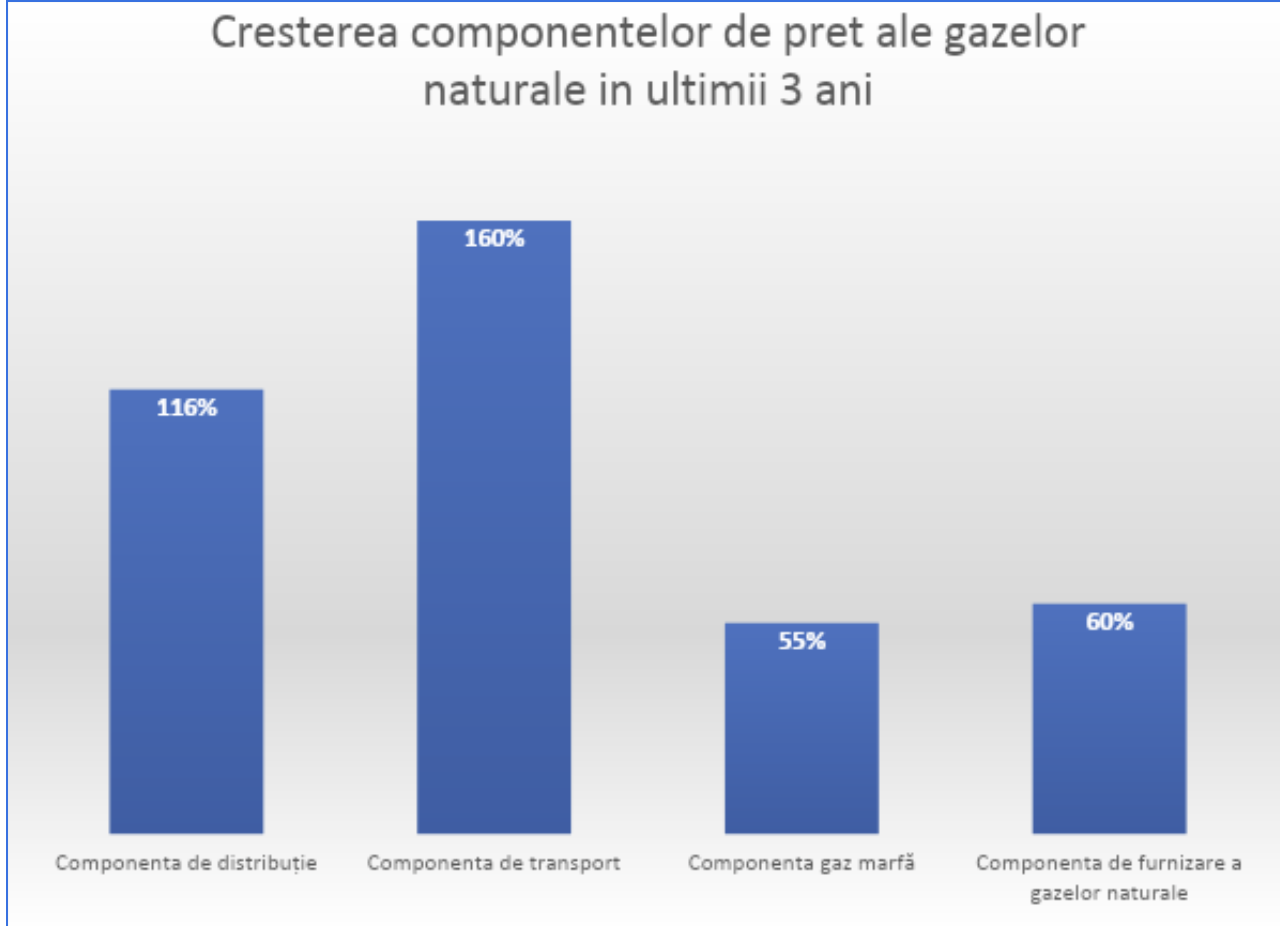 Creșterea prețului la gaze a avut la bază următoarele creșteri din ultimii 3 ani: