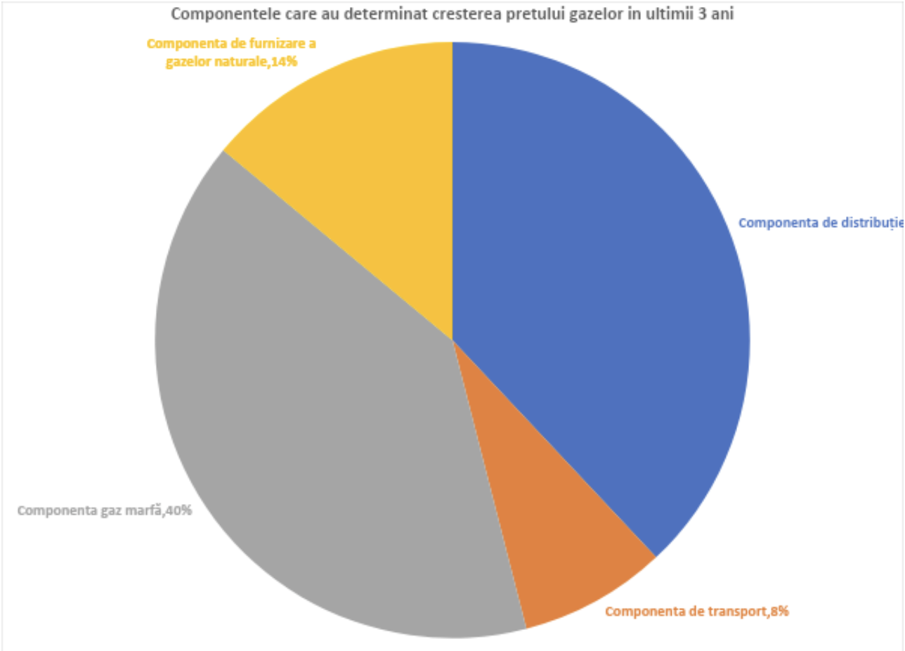 Creșterea componentei gaz marfă se datorează evoluției prețului pe bursele de gaze și a formării pieței europene a gazelor naturale, dar și a fiscalității ridicate din zona de producție și funizare a gazelor.