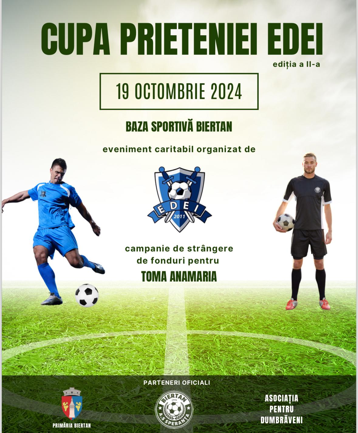 Pe 19 octombrie 2024, Baza Sportivă Biertan va găzdui a doua ediție a Cupei Prieteniei Edei, un eveniment dedicat celebrării spiritului de echipă și susținerii unei cauze caritabile importante.