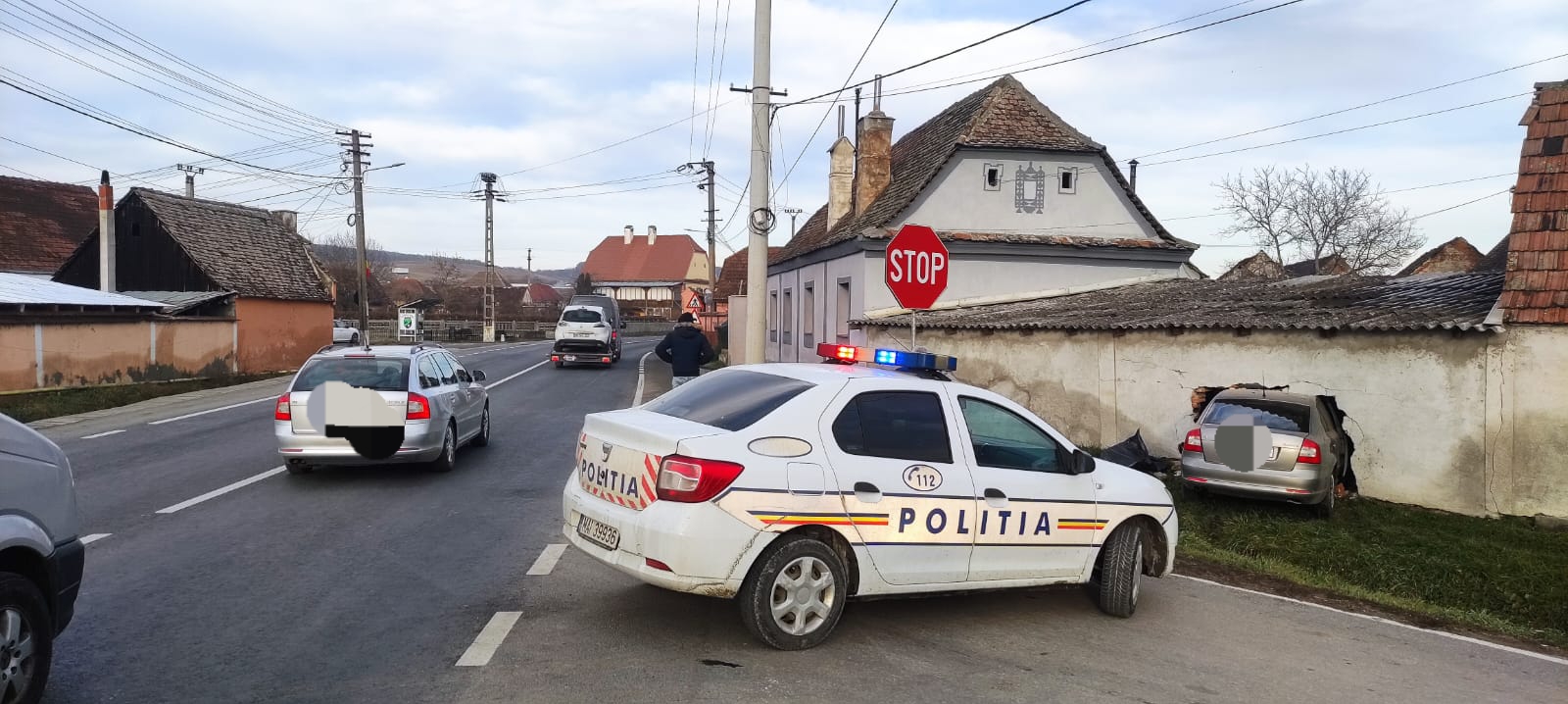 În timp ce conducea un autoturism spre Brașov, din cauze care urmează a se stabili, un brașovean în vârstă de 71 de ani a pierdut controlul direcției de mers și a intrat în coliziune cu peretele unui imobil.