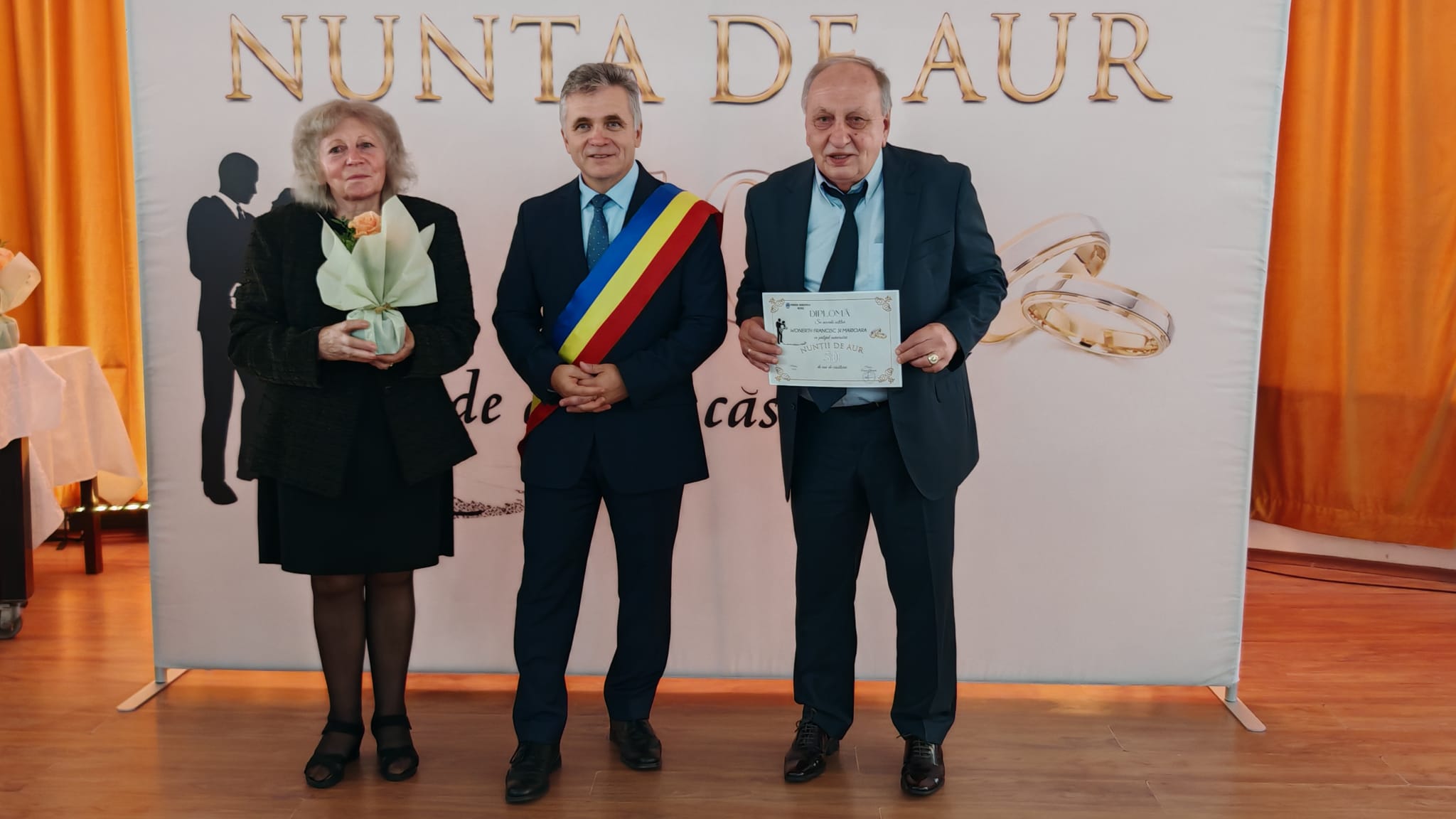 Vă adresăm, așadar, întreaga noastră prețuire și admirație. Vă dorim ani senini înainte, sănătate și binecuvântare, iar lumina pe care o răspândiți să rămână mereu un exemplu călăuzitor pentru toți cei care cred în frumusețea vieții trăite în doi”, le-a transmis primarul municipiului Mediaș, domnul Gheorghe Roman cuplurilor premiate.